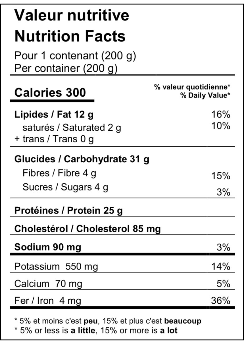 Composées de saumon frais, de patates douces et d’épinards, deux bouchées de saumon sont accompagnées de nouilles aux légumes verts. Un plat complet, riche en fer et en protéines, et souvent suffisant pour 2 repas.